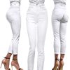 Białe Jeansy Damskie Z Wysokim Stanem