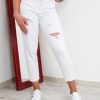 Białe Jeansy Damskie Z Wysokim Stanem
