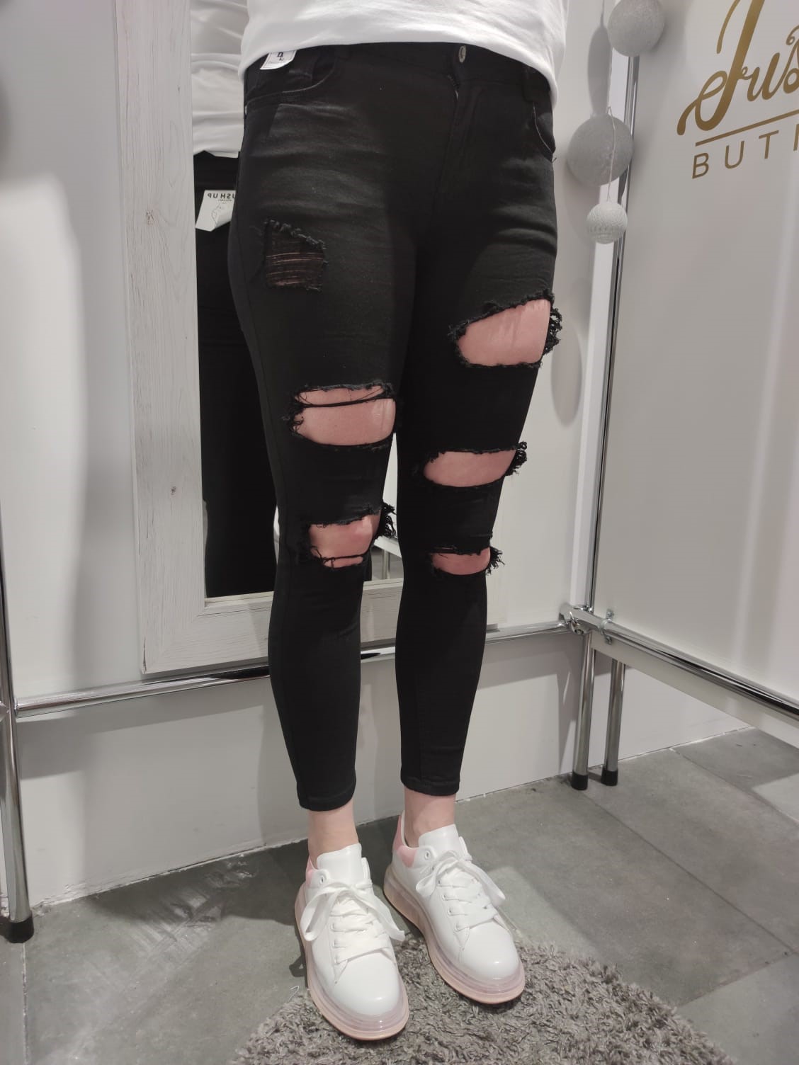 czarne jeansy z dziurami